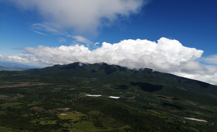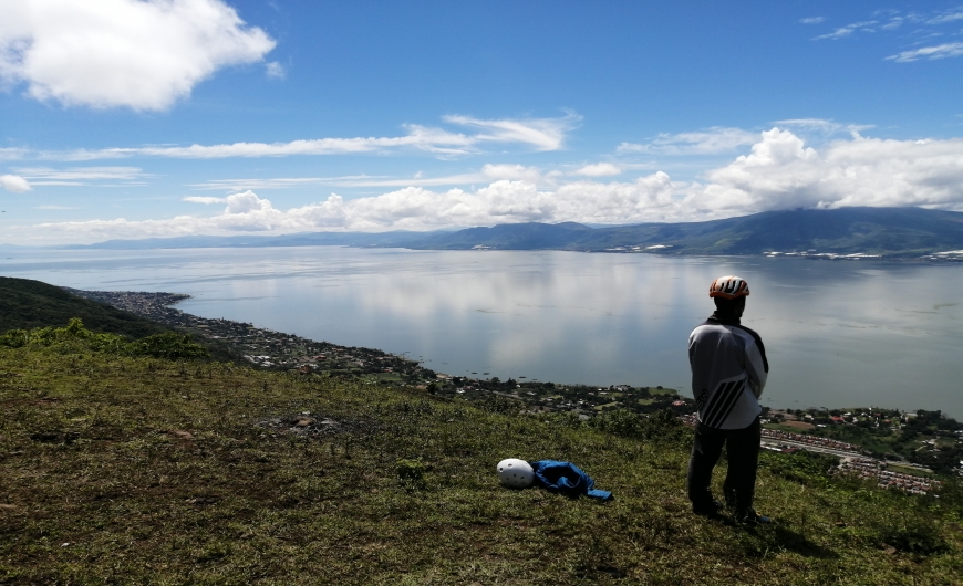 Dirígete siguiendo la barda de piedras en dirección norte hasta que la brecha termine y se convierta en un sendero angosto pero bien marcado con una bifurcación de caminos, deberás tomar el de la izquierda; poco más adelante encontrarás una segunda bifurcación en la cuál deberás elegir el camino de la derecha. A partir de aqui el sendero es muy evidente en todo su trayecto, irá en ascenso no muy pronunciado y de manera ondulante ofreciendo en algunos puntos buenas vistas de Jocotepec y del Lago de Chapala. Más arriba, a los 2.2 kms de haber comenzado tu recorrido, encontrarás un pequeño sendero a tu mano derecha, si lo tomas encontrarás una cruz que sirve como mirador. Continúa y en 380 metros más, ya en el lomo del cerro encontrarás una nueva bifurcación, gira hacia la derecha para llegar a la explanada conocida como “El Ocote”, el final de este sendero. Aquí tienes opción de bajar por el mismo camino o caminar en dirección oriente por el filo del cerro, también conocido como “Sendero del Anillo Verde” y conectar con las localidades de San Juan Cosalá, Las Trojes, Potrerillos, Ajijic e Ixtlahuacán de los Membrillos.